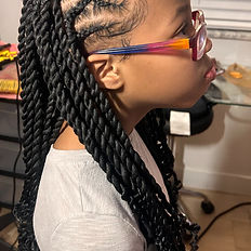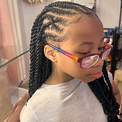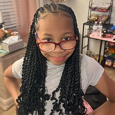 For Girls: 7-12 years Tribal Twists - includes curved or straight cornrow patterns in the front and 2-strand twists in the back. Each set is customized to your child’s hair, length, and desired pattern. ~ Hair Included. - Boho curls are available as an add on. - Ombre ends are available as an add on. *Please Note* - The displayed prices are for a " Shoulder" or "Mid-Back" Length. - For "Waist Length" please see the "Length Add-ons" category to add your preferred length to your appointment. ($10 upcharge) *Please Note* - We ask that all children arrive to their appointment with their natural hair washed and blow-dried/ stretched. - Blow-drying/ Stretching of the hair is available as an appointment add-on for an upcharge. (heat protectant used) ~ Available Appointment Add-Ons ~ - Blow-drying/ Stretching: $10 - Waist Length: $10 - Ombre Ends: $10 (Purple, Blue, Red, or Blonde) - Hair Jewelry (charms, cuffs, ect.): $5 - Boho Curls Added: $20 - At- Home Appointment: $50